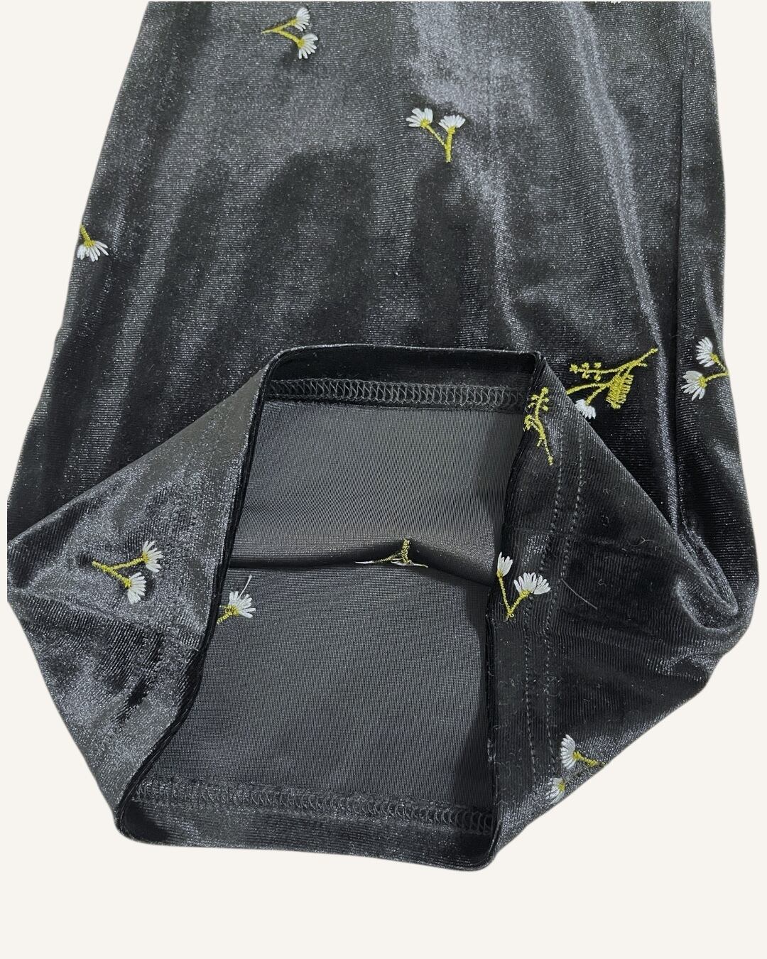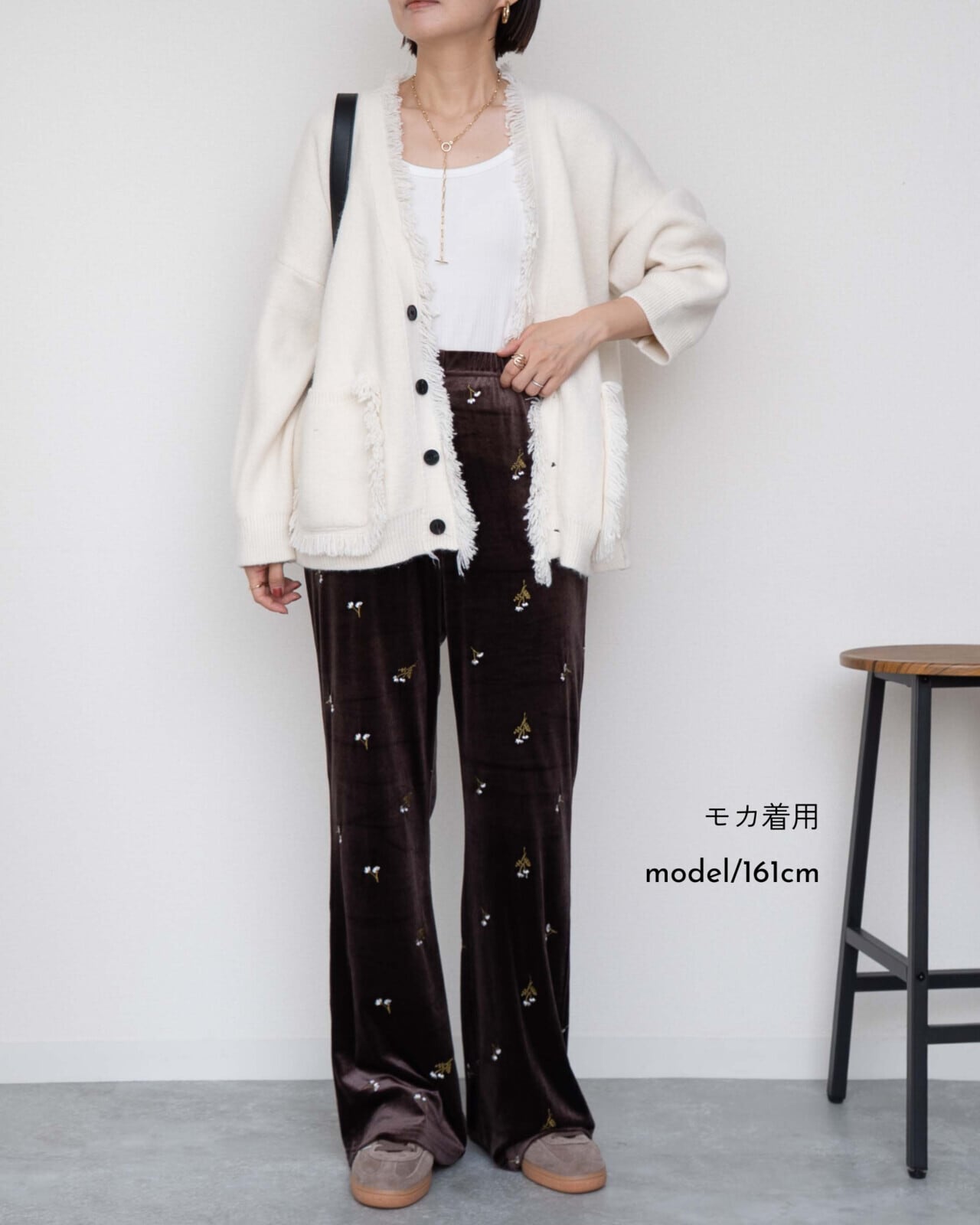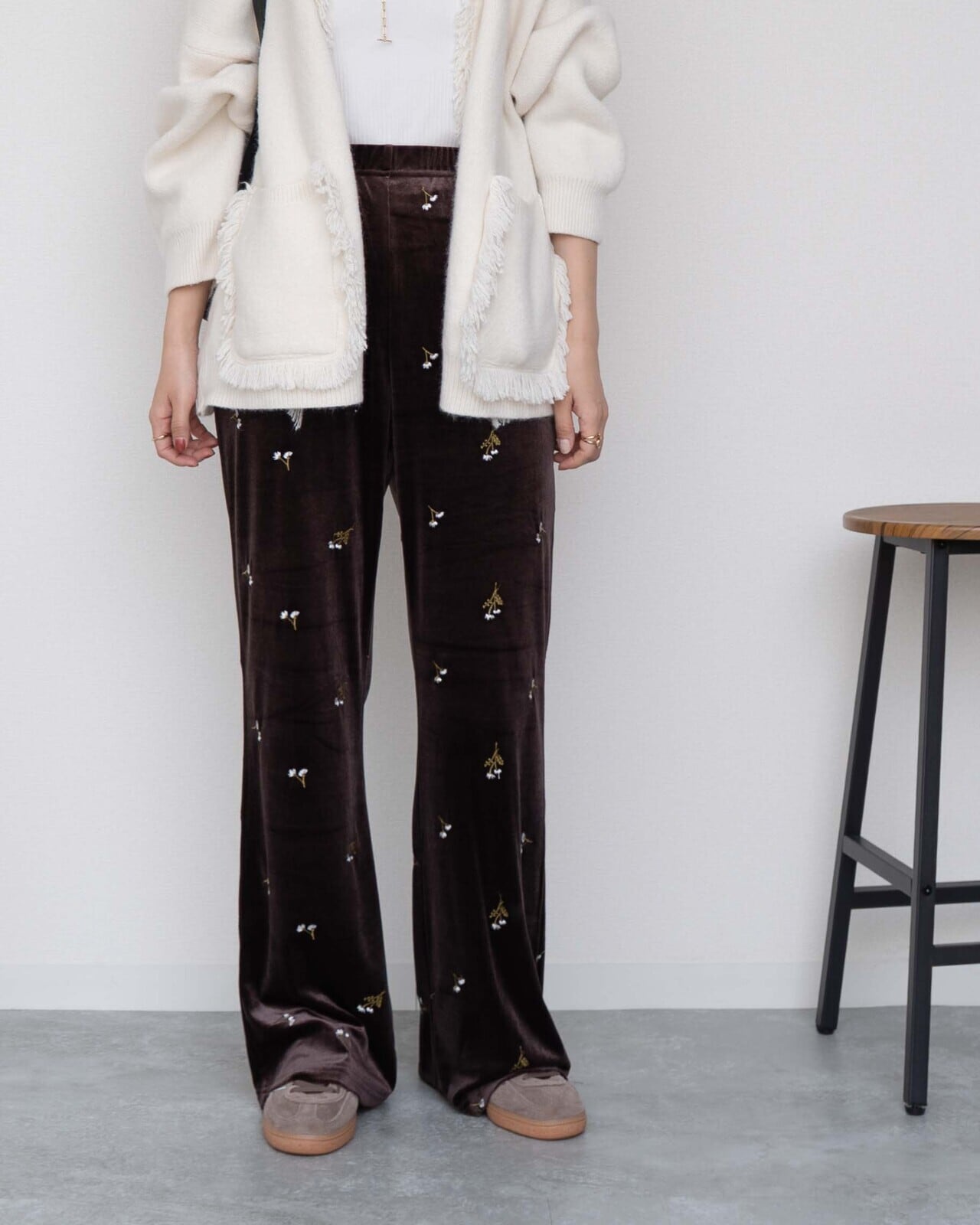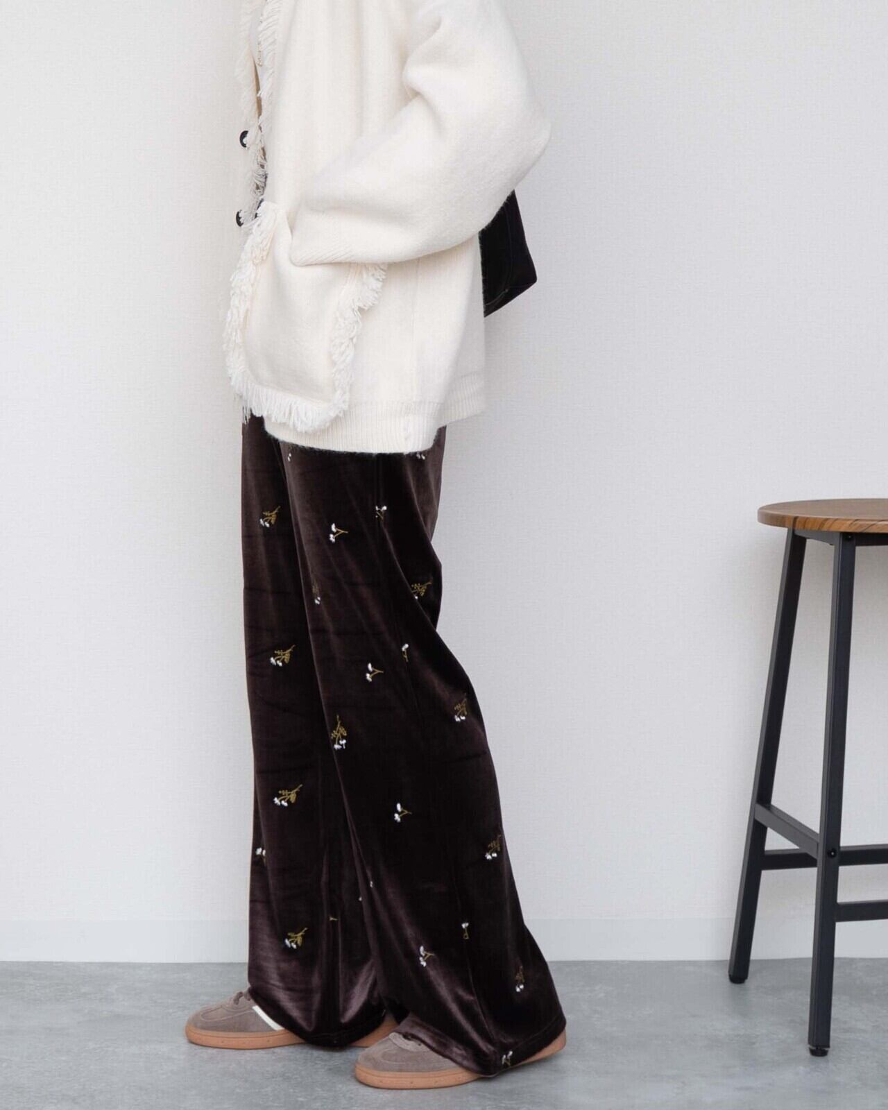 花柄の刺繍が入ったベロアパンツです。